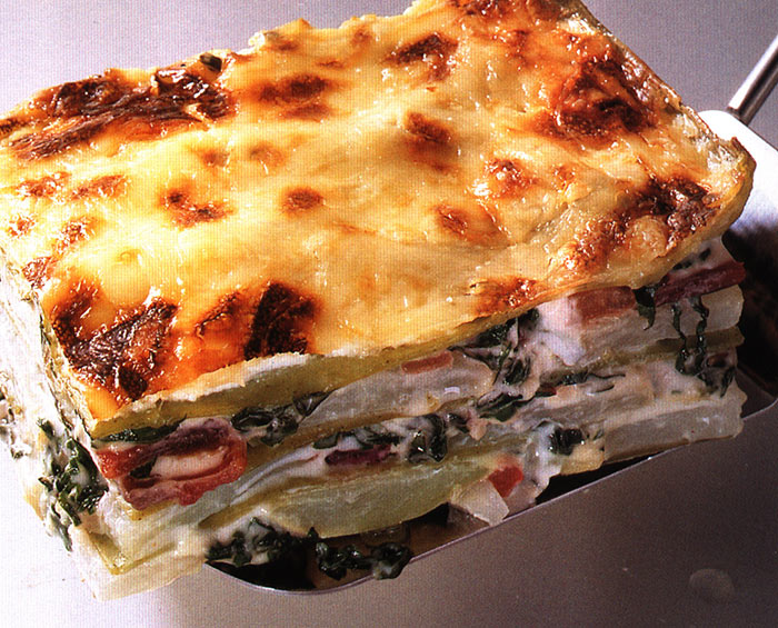 Für das Gemüsesugo das geputzte Gemüse und Zwiebel fein würfeln. Alles in einer Kasserolle mit Olivenöl kurz anbraten, Oregano und Thymian zugeben, mit Gemüsebrühe auffüllen, salzen und tomatisieren. Langsam einkochen lassen, bis das Gemüse weich und dicklich ist. Zuletzt mit Basilikum Pesto und Pfeffer abschmecken.Auberginen putzen, waschen und in dicke Scheiben schneiden. Zucchini der Länge nach in dünne Scheiben schneiden. Beides mit Meersalz und Oregano würzen und in einer beschichteten Pfanne mit Olivenöl beidseitig herausbraten. Die Gemüsescheiben in einer geölten Form lagenmäßig mit dem Gemüsesugo bestreichen, dazwischen den Hartkäse geben und zu letzt den gewürfelten Mozzarella draufgeben. Im vorgeheizten Ofen bei 200°C 15-20 Minuten überbacken, portionieren und mit Sauerrahm anrichten. Mit Oregano garnieren.